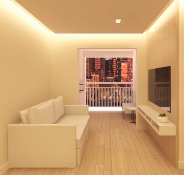 Apartamento de 55m² para um casal, por volta de seus 30 anos, com dois cachorros. Ele é cientista de dados, ela é arquiteta (sim, arquitetos também precisam de um projeto rs).